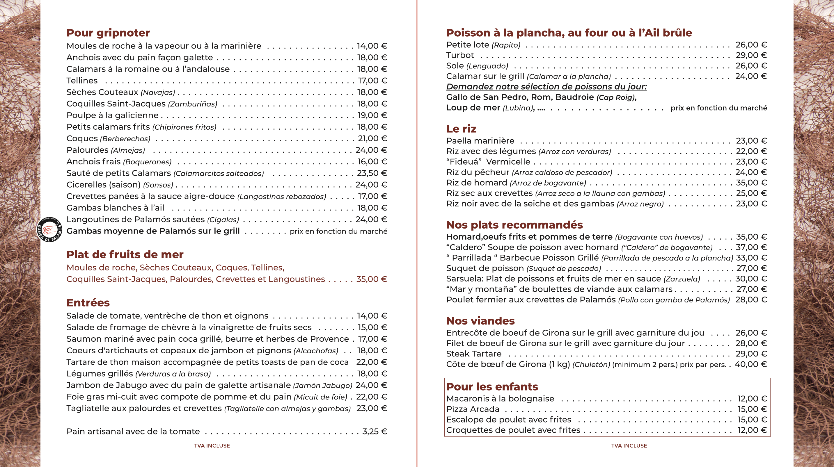 MENÚ DE LA GAMBA